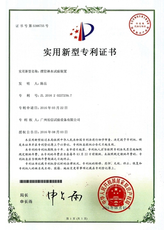 滴水試驗裝置-實用新型專利證書【岳信公司】