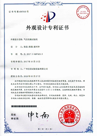 氣壓檢漏試驗機(jī)-外觀專利證書【岳信公司】